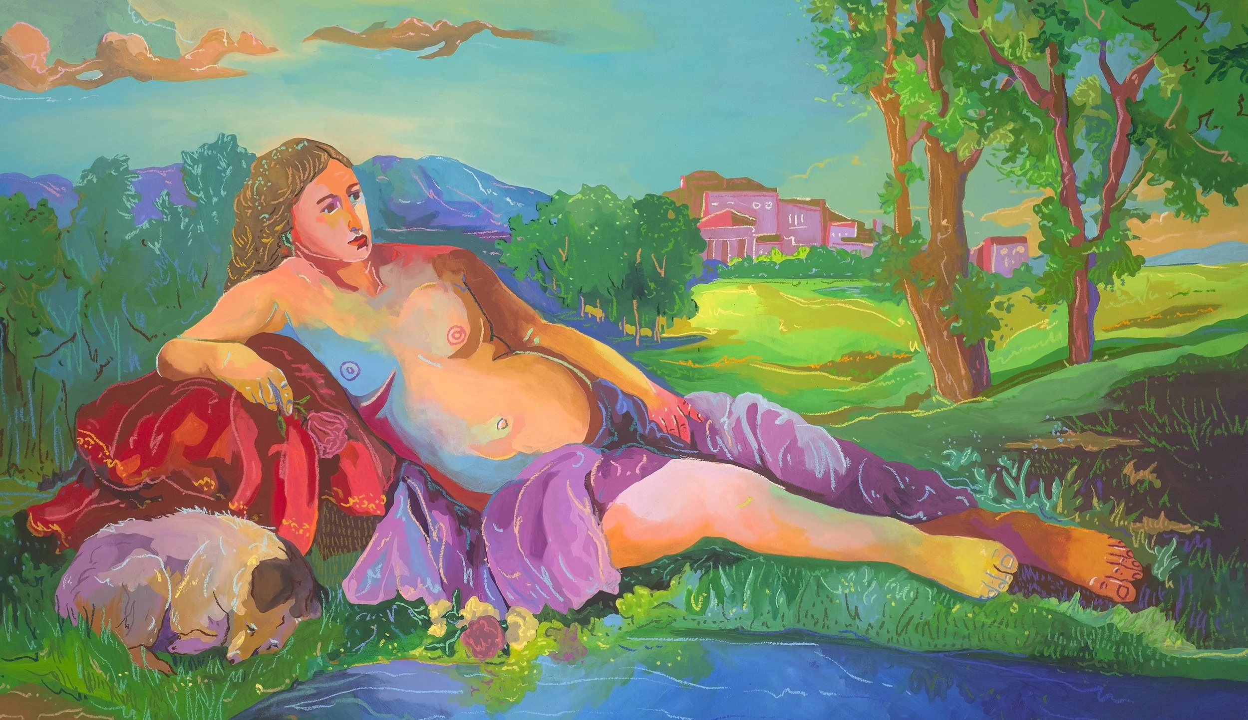 rogue colorist. the original. contemporary figurative painting. chromatic gender critique. chromatic subversion. venetian tradition. titian precedent. giorgione precedent. dresden venus. the nude. pastoral figure. direct gaze. chromatic landscape.